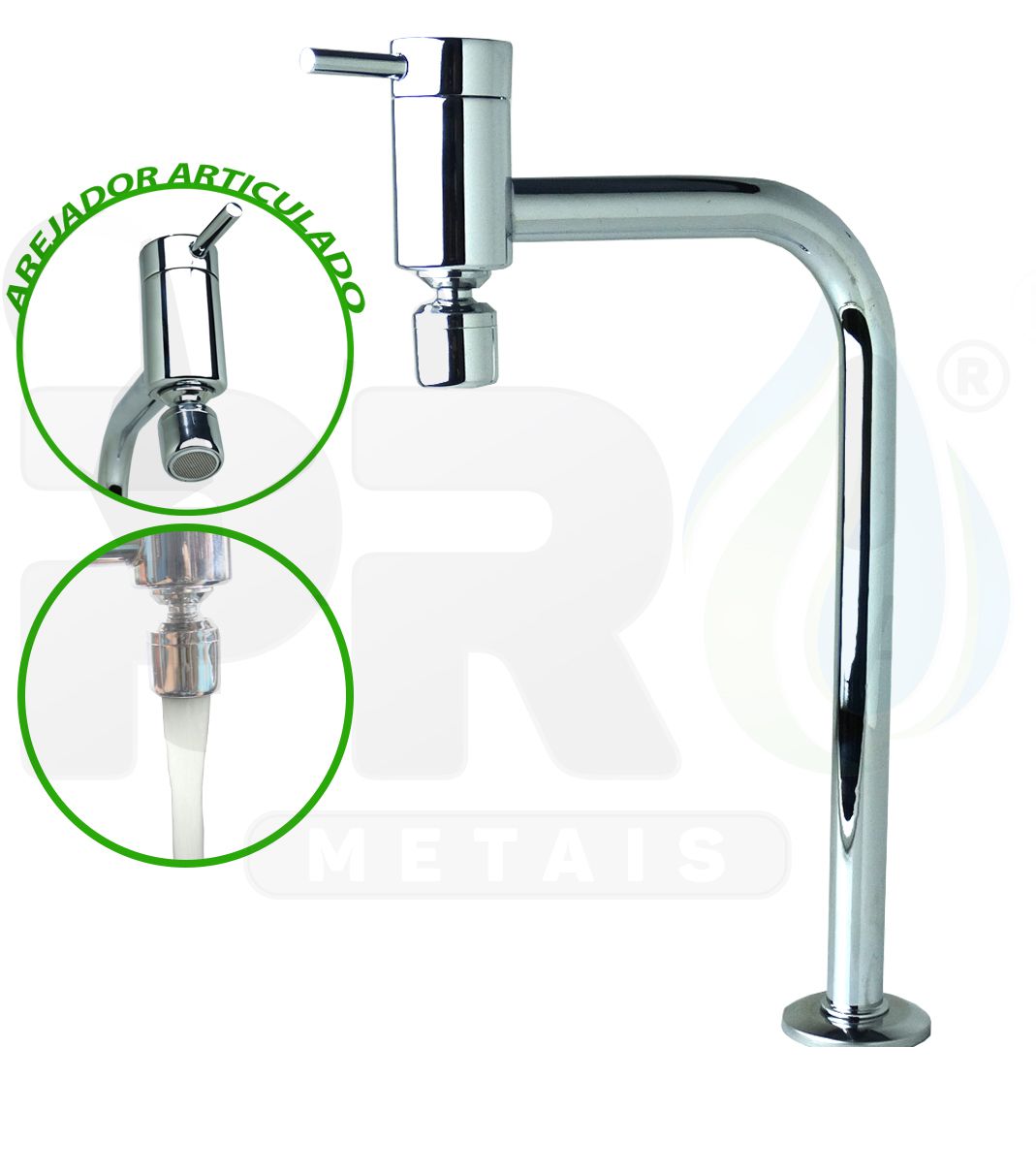 A torneira possui um arejador articulado, afim de dar mais mobilidade no uso do dia a dia, propiciando um excelente jato d'água, girando para todos os lados.